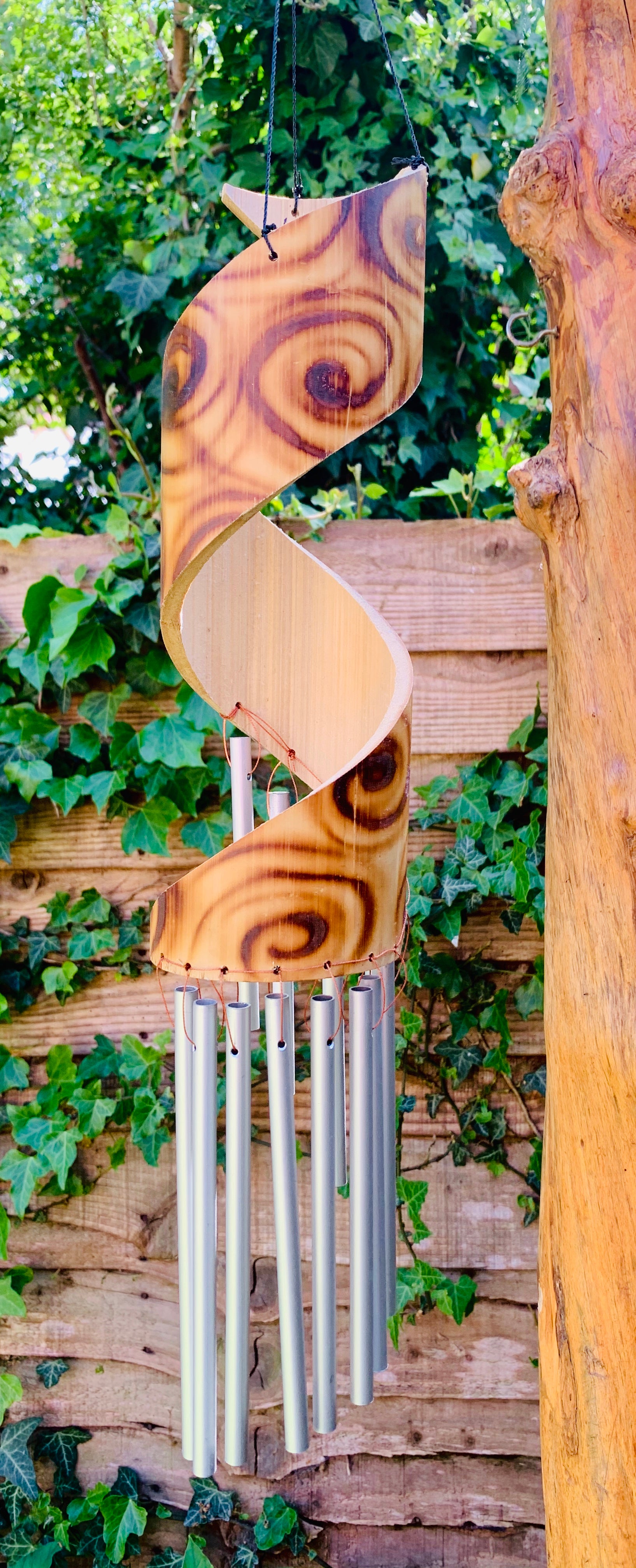 Made from bamboo with metal chimes producing a beautiful tinkling sound. Perfect for indoor or outdoor use for brightening long winter days on a balcony or patio.