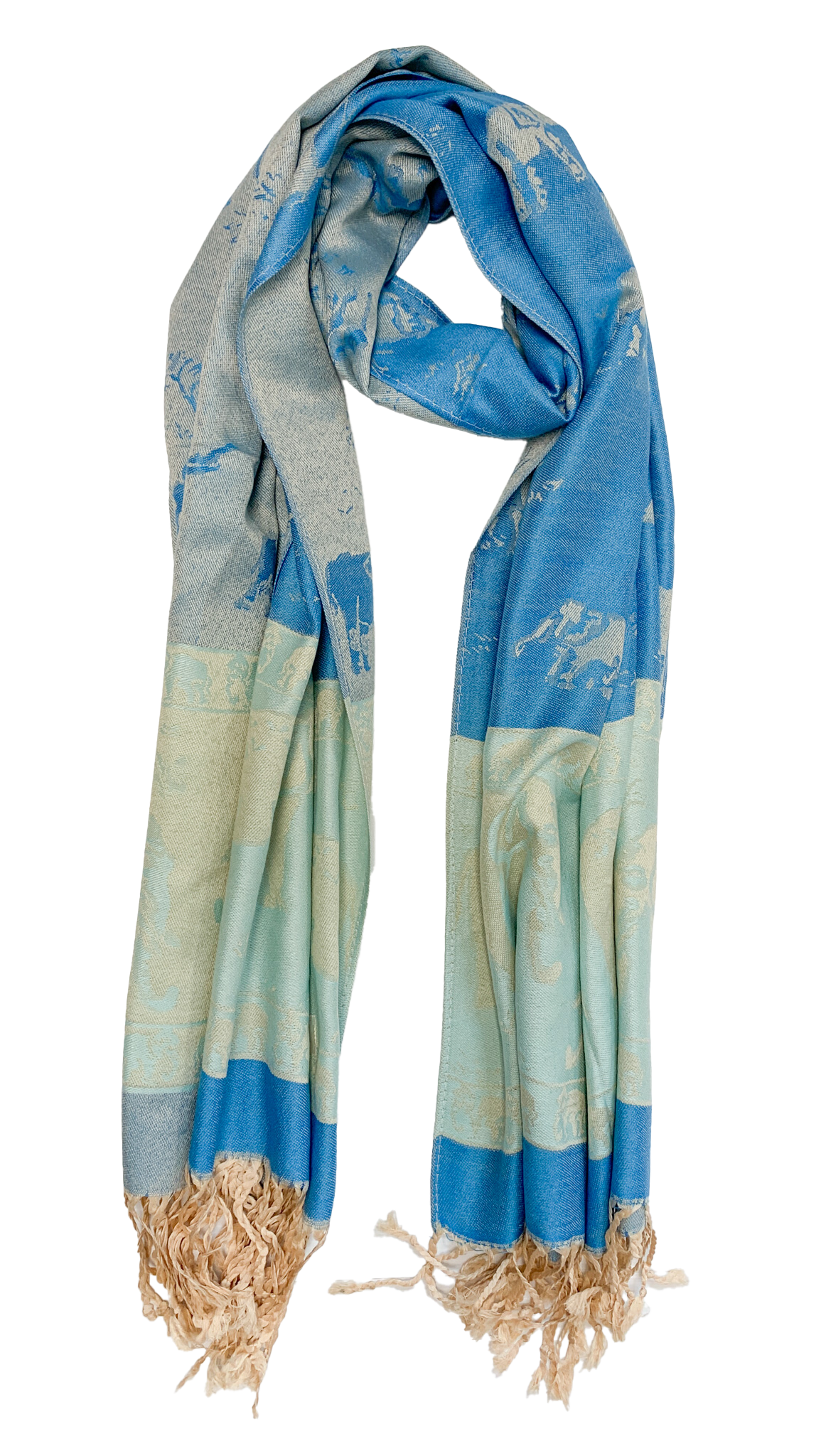 Blue and Turquoise Pastel Elephant Cashmere Scarf