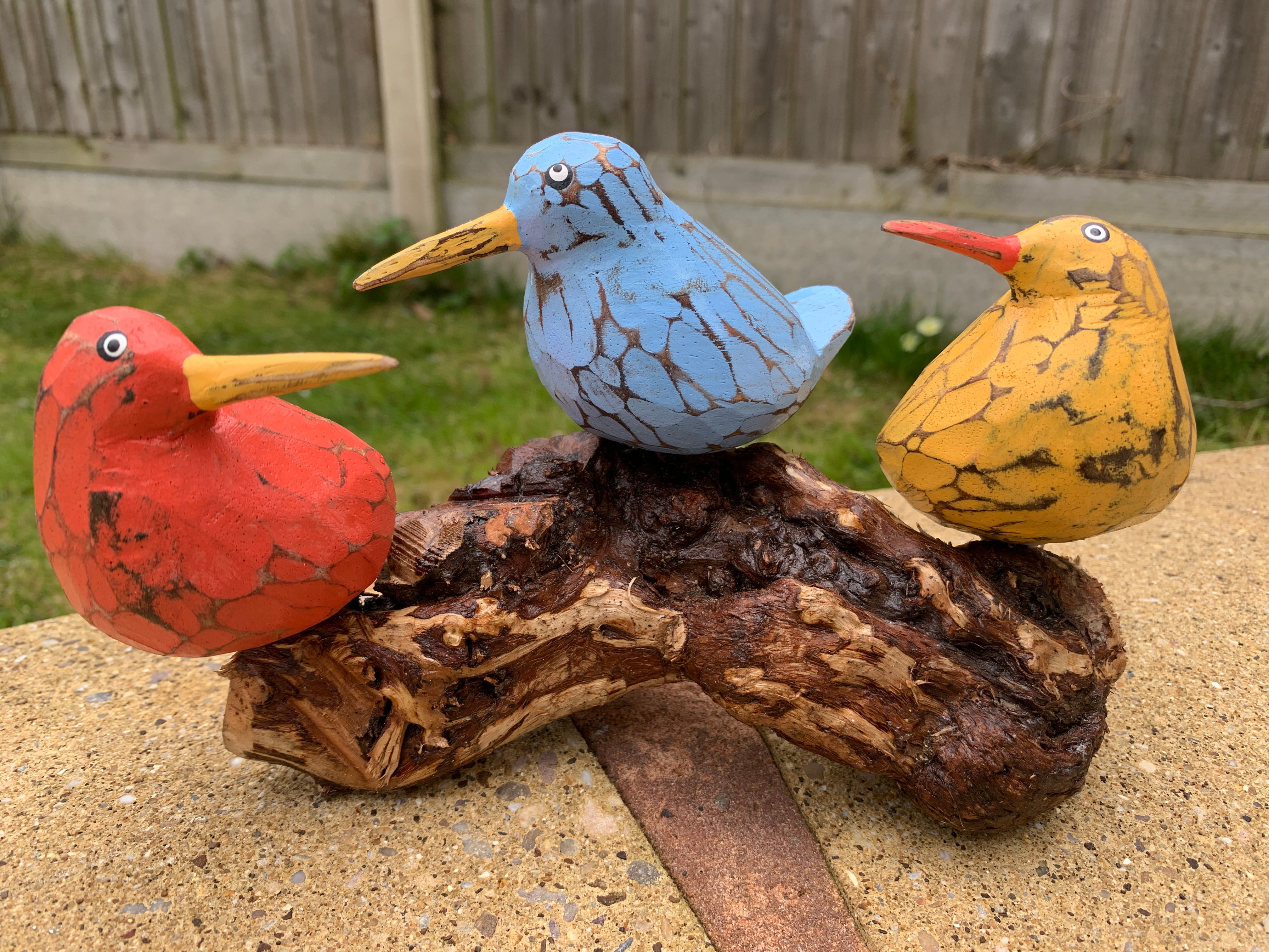 These beautiful hand painted and hand carved birds are perched on a piece of coffee root. Expertly painted with incredible attention to detail. They make an ideal gift for that bird lover in your family.