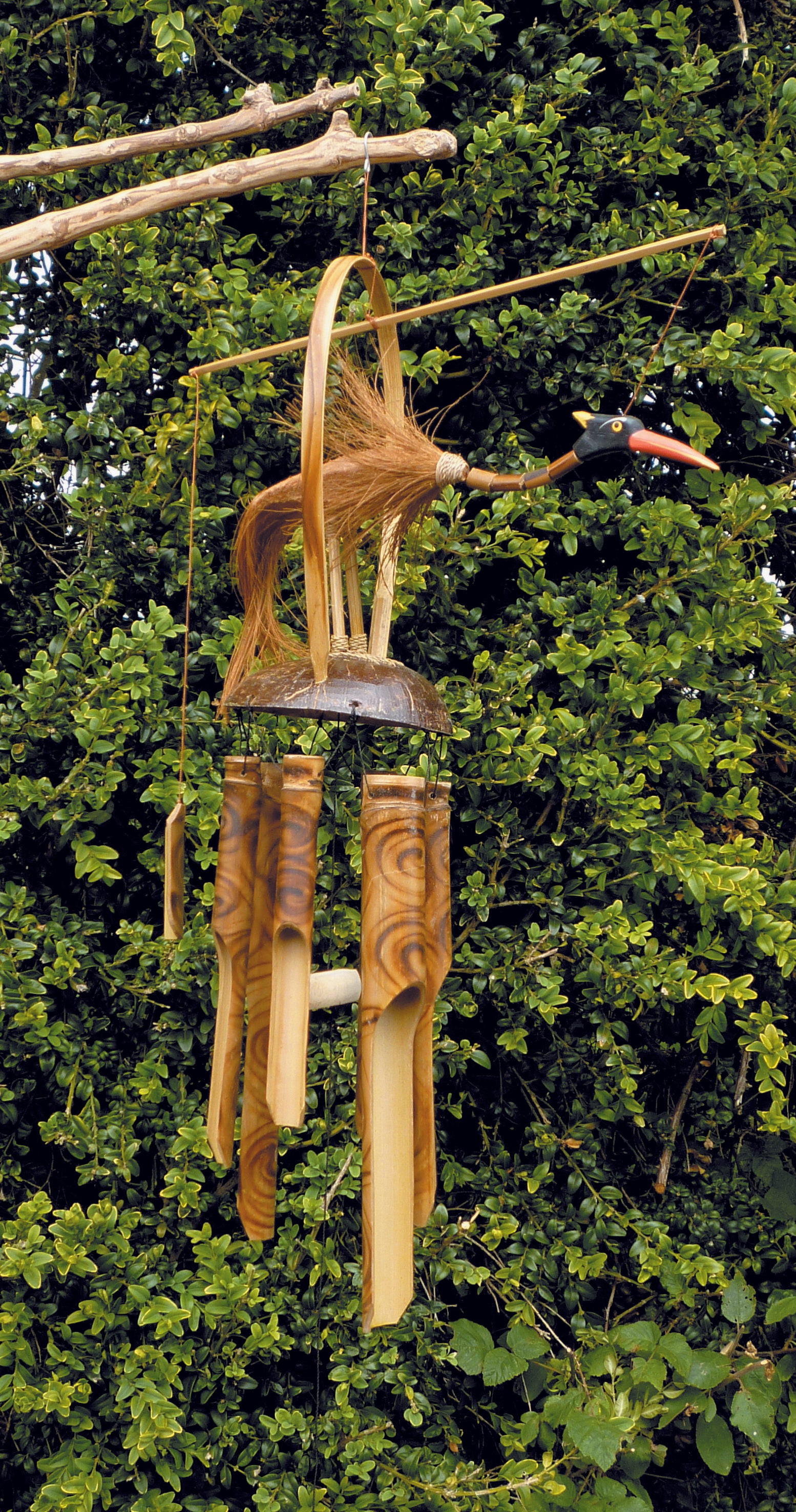 Our chimes and birdhouses are handcrafted by a number of different family workshops and co-operatives on the islands of Indonesia. All the chimes and birdhouses are made using locally sourced bamboo, coconut shell and various straws and grasses. All our chimes are made using nylon twine for extended outdoor life!