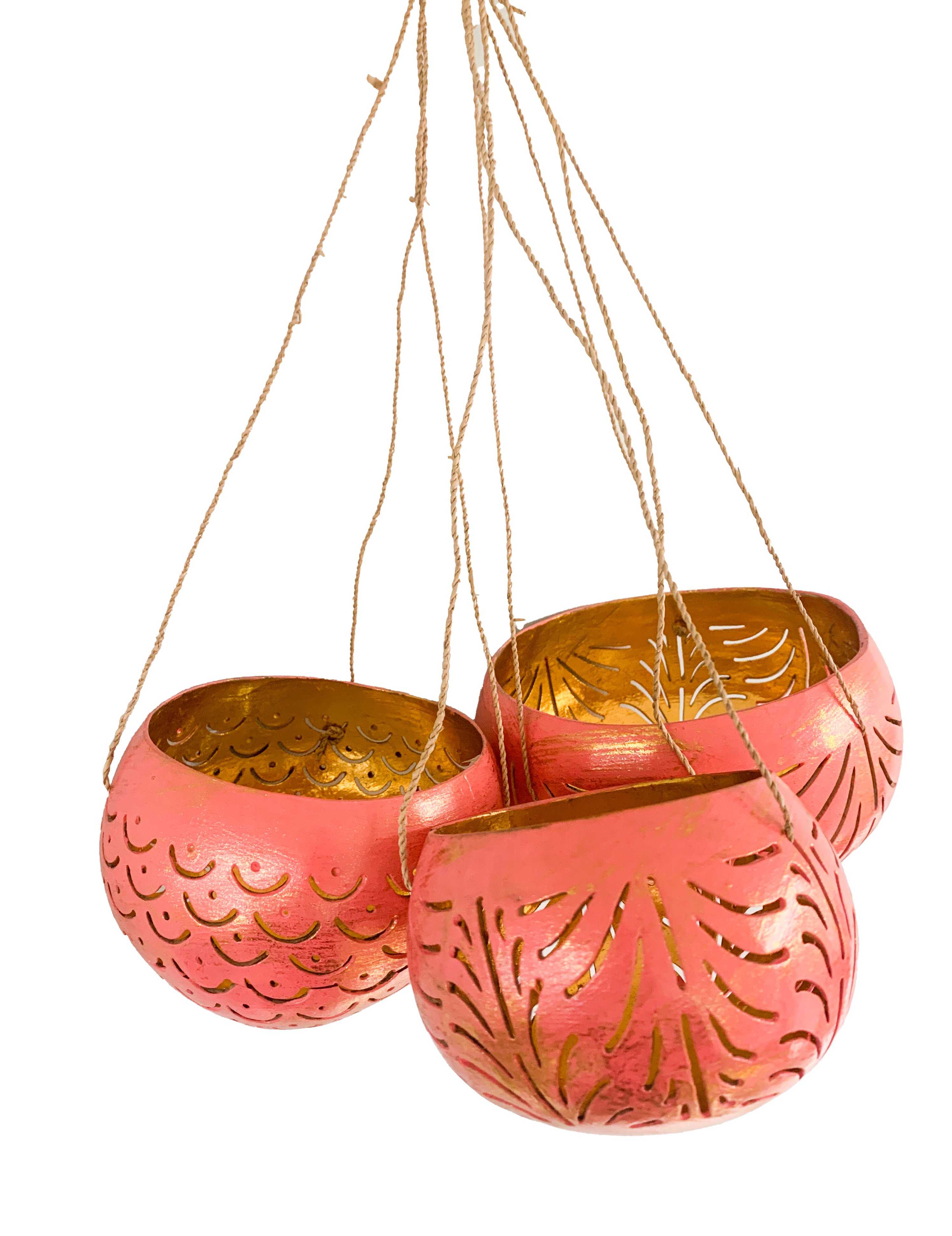 Transform your home into a serene oasis with our eco-friendly Coconut Candle Holders. Handcrafted from reclaimed coconut shells, our candle holder promotes sustainability while adding a tropical touch to your environment. Painted inside with a wonderful warming gold that maximises light reflection.Alternatively, why not use these beautiful, ornate shells as hanging planters. Measures (approx):Small 12 x 12 x 8cmMedium 13 x 13 x 9cmLarge 15 x 15 x 10cm(As these are made from natural coconut...