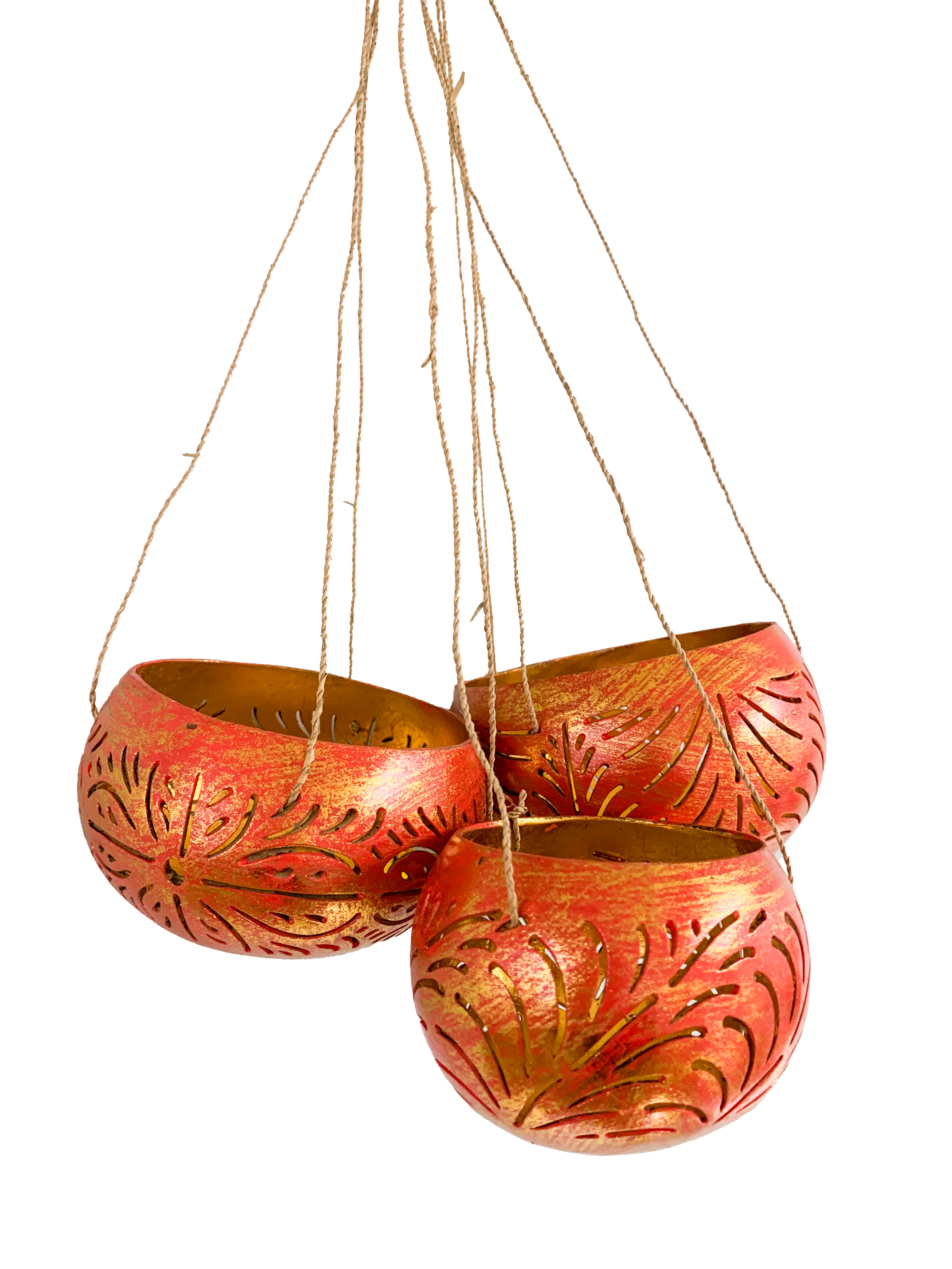 Transform your home into a serene oasis with our eco-friendly Coconut Candle Holders. Handcrafted from reclaimed coconut shells, our candle holder promotes sustainability while adding a tropical touch to your environment. Painted inside with a wonderful warming gold that maximises light reflection.Alternatively, why not use these beautiful, ornate shells as hanging planters. Measures (approx):Small 12 x 12 x 8cmMedium 13 x 13 x 9cmLarge 15 x 15 x 10cm(As these are made from natural coconut...