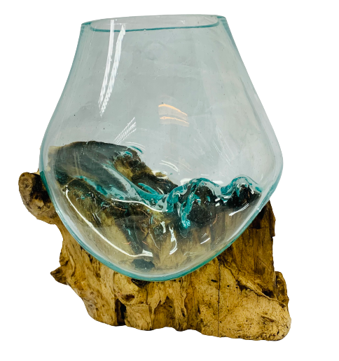 These large glass bowls are made from recycled glass that is hand blown onto individual pieces of wood creating a truly unique item! We work directly with the families that make these products so they are completely Fair Trade too.