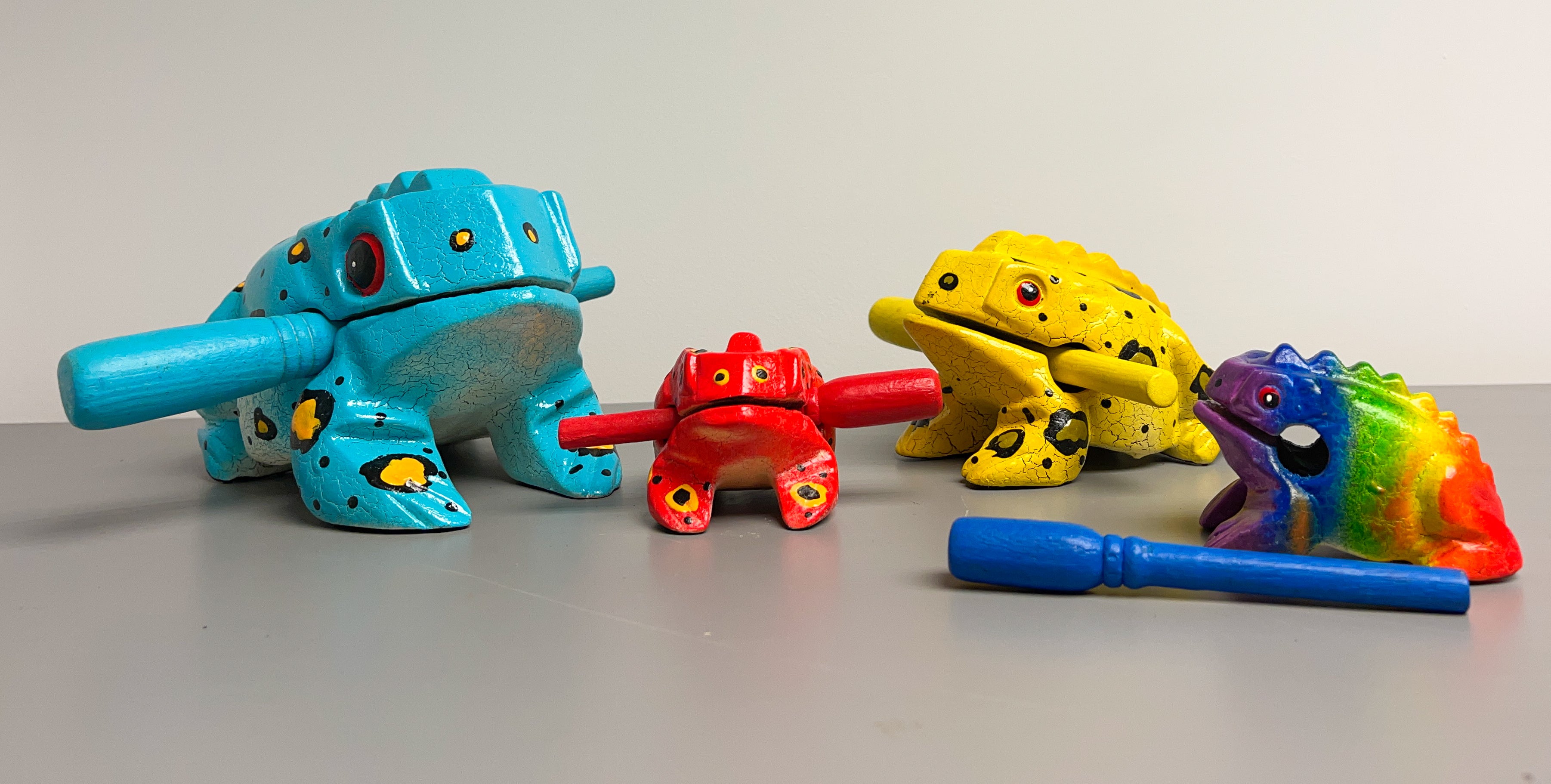 These gorgeous guiros are lovingly hand carved and painted to create a wooden instrument that looks and sounds great.