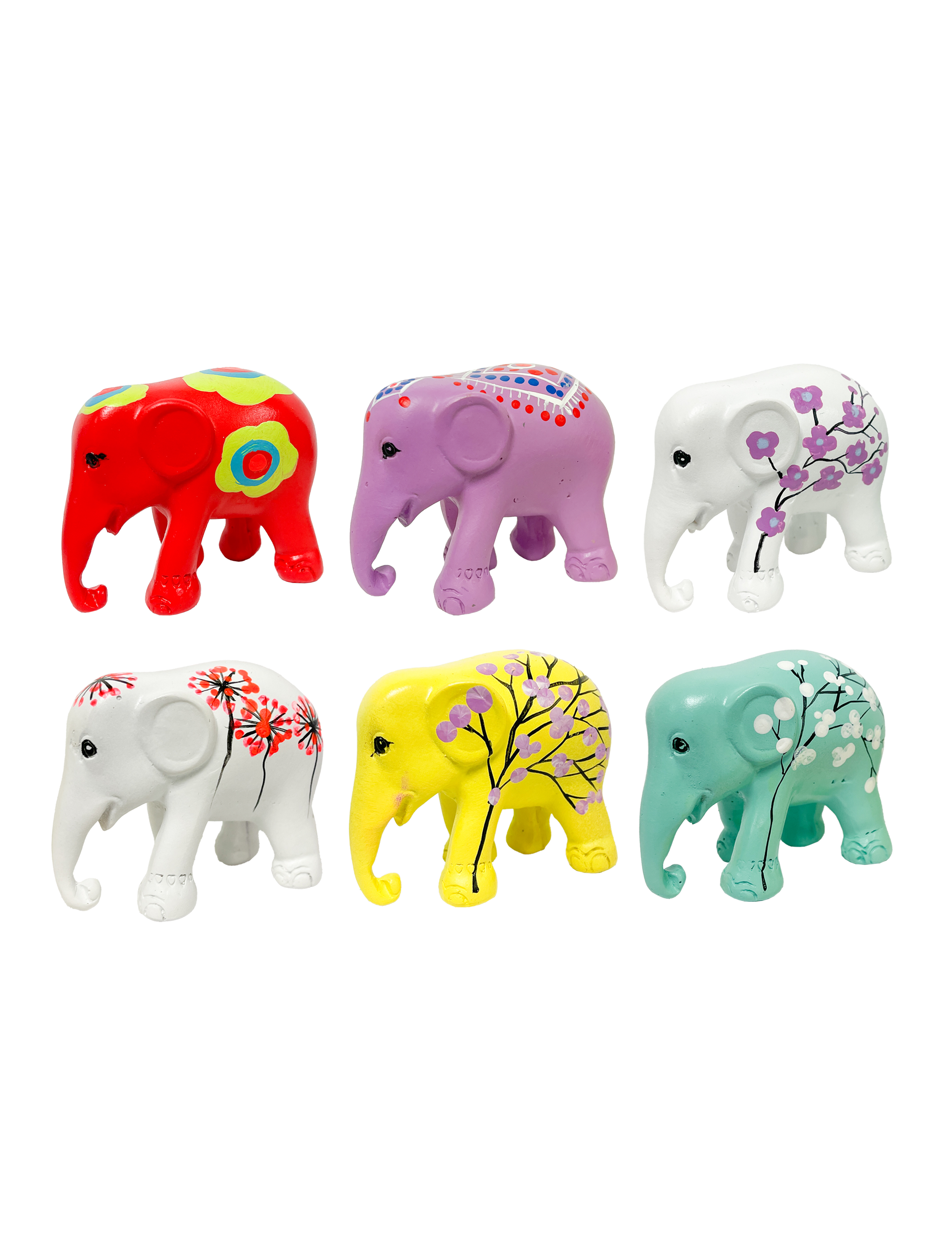 Painted Resin Elephants - Medium