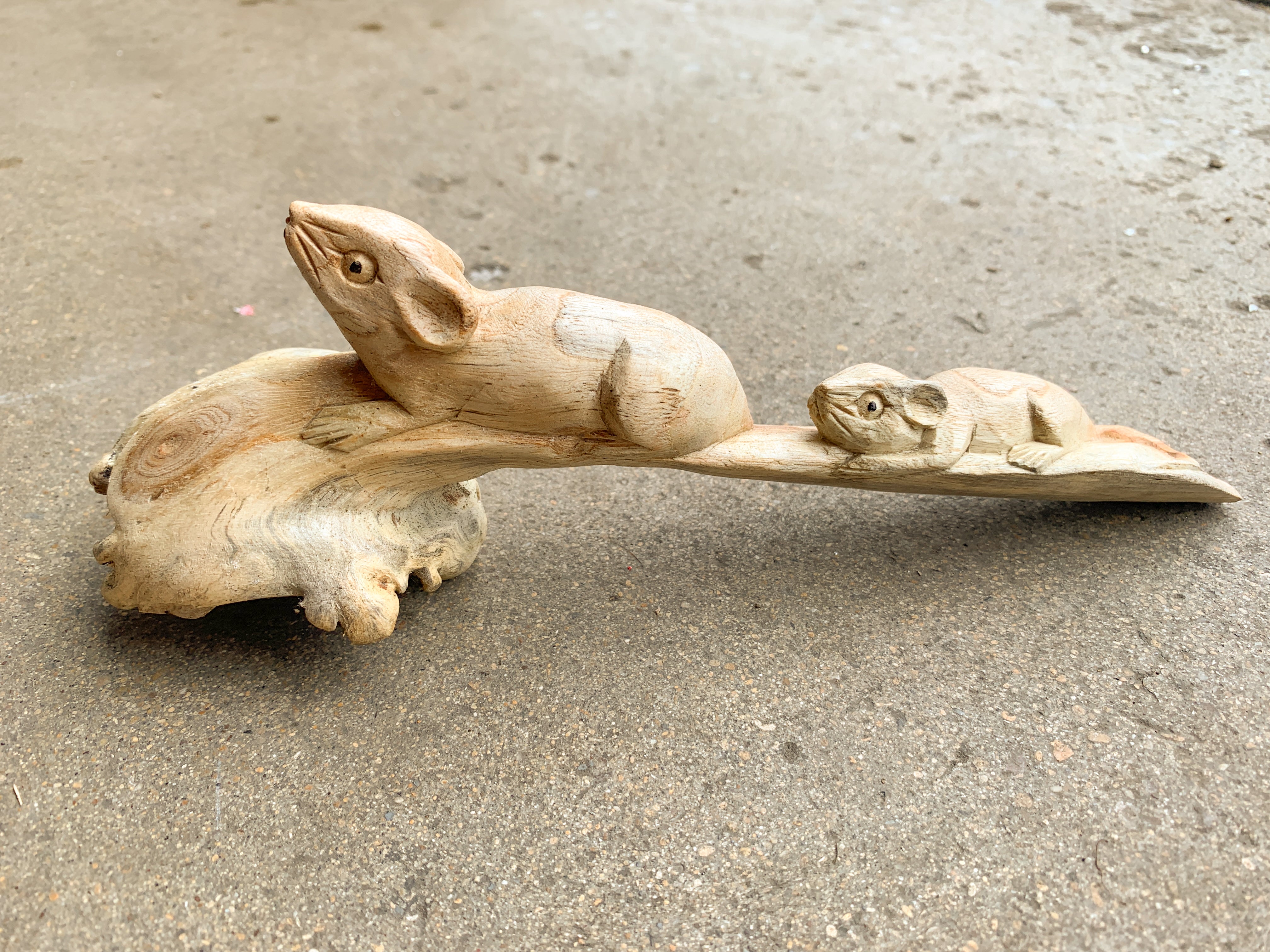 This parasite wood carving is lovingly hand carved by the wonderful artisans we work with in Indonesia. The main part of the carving is carved from wood from the Chinaberry tree. The Chinaberry tree, in particular, can play host to a parasitic plant, a little like mistletoe, that attaches itself to the bark of the tree, and takes nourishment from the tree sap. Whilst the parasitic plant is attached, the Chinaberry tree growth is distorted around the point of attachment, producing so-called “wood roses”. The presence of the parasitic plant can damage, and even kill the host tree. The parasitic plants are removed, often saving the tree, and the resulting “wood roses” are removed and carved into a wide range of different forms, buy the skilled artisans of Indonesia. As each piece of parasite wood is natural each item will differ slightly in shape and size but to us the amazing part of this is you are guaranteed a truly unique one-off piece!