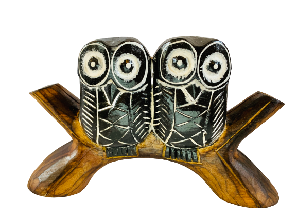This beautiful handmade owl sculpture features two baby owls sitting wisely on a branch. This carving was hand made in Indonesia by one of our incredibly talented artisans and is 100% fair trade.