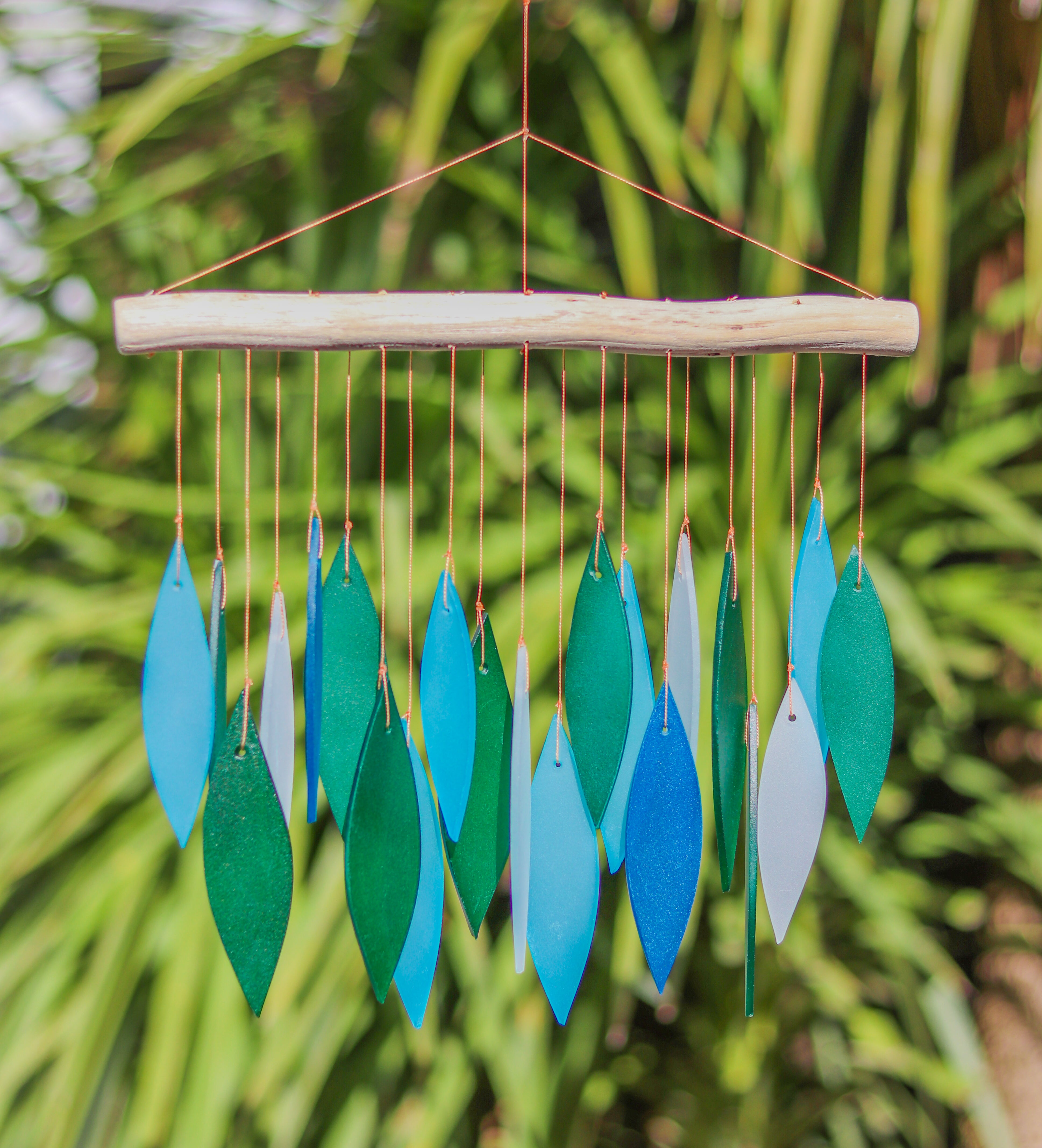 These magical, handmade glass wind chimes look fabulous and make a gentle tinkling noise as they move in the breeze. We have worked exclusively with the family who make these chimes for over 20 years. Over those years the range has expanded and grown as these chimes increase in popularity. Completely hand made by talented artisans on the islands of Indonesia using recycled glass and locally sourced wood they are 100% Fair Trade.