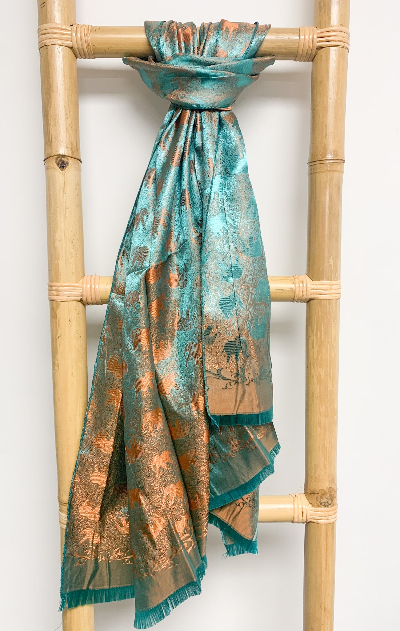 These beautiful elephant scarfs have been handmade by the very talented artisans we work with in Thailand. They are great to use for layering up in the winter or at the summer festivals to cover up from the sun! They are soft and light weight and made using Silk.Dimensions: Length - 180cmWidth - 70cmCare Instructions:- Wash gently with cold water and soap or shampoo.- Blot dry without twisting as this will damage the fibres.- Let...