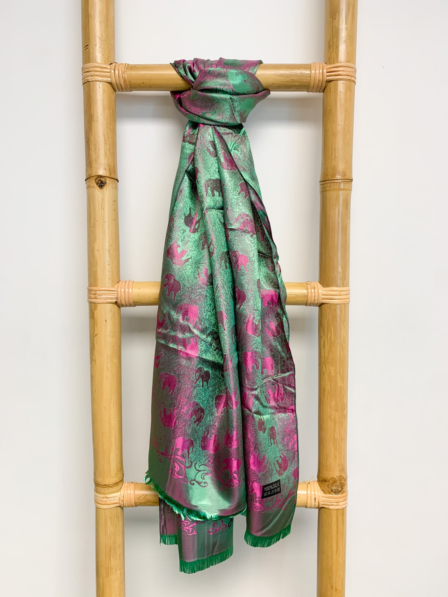 These beautiful elephant scarfs have been handmade by the very talented artisans we work with in Thailand. They are great to use for layering up in the winter or at the summer festivals to cover up from the sun! They are soft and light weight and made using Silk.Dimensions: Length - 180cmWidth - 70cmCare Instructions:- Wash gently with cold water and soap or shampoo.- Blot dry without twisting as this will damage the fibres.- Let...