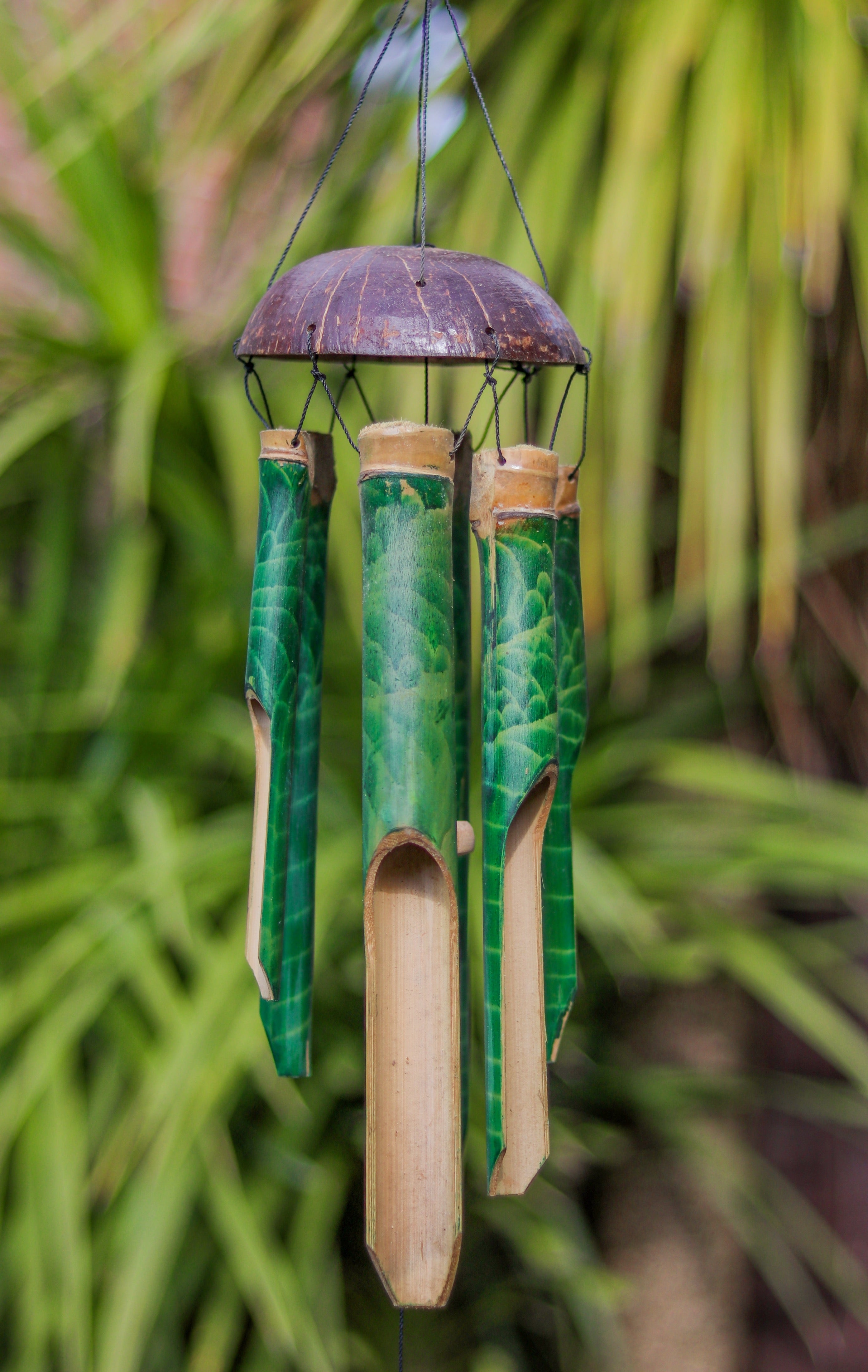 Our chimes and birdhouses are handcrafted by a number of different family workshops and co-operatives on the islands of Indonesia. All the chimes and birdhouses are made using locally sourced bamboo and coconut shell. All our chimes are made using nylon twine for extended outdoor life!