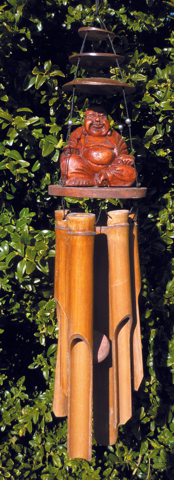 This beautiful natural bamboo wind chime is made from sustainably sourced bamboo and come with a wooden Buddha perched on top. Made from sustainably sourced bamboo by our skilled artisans in Indonesia and completely fair trade.