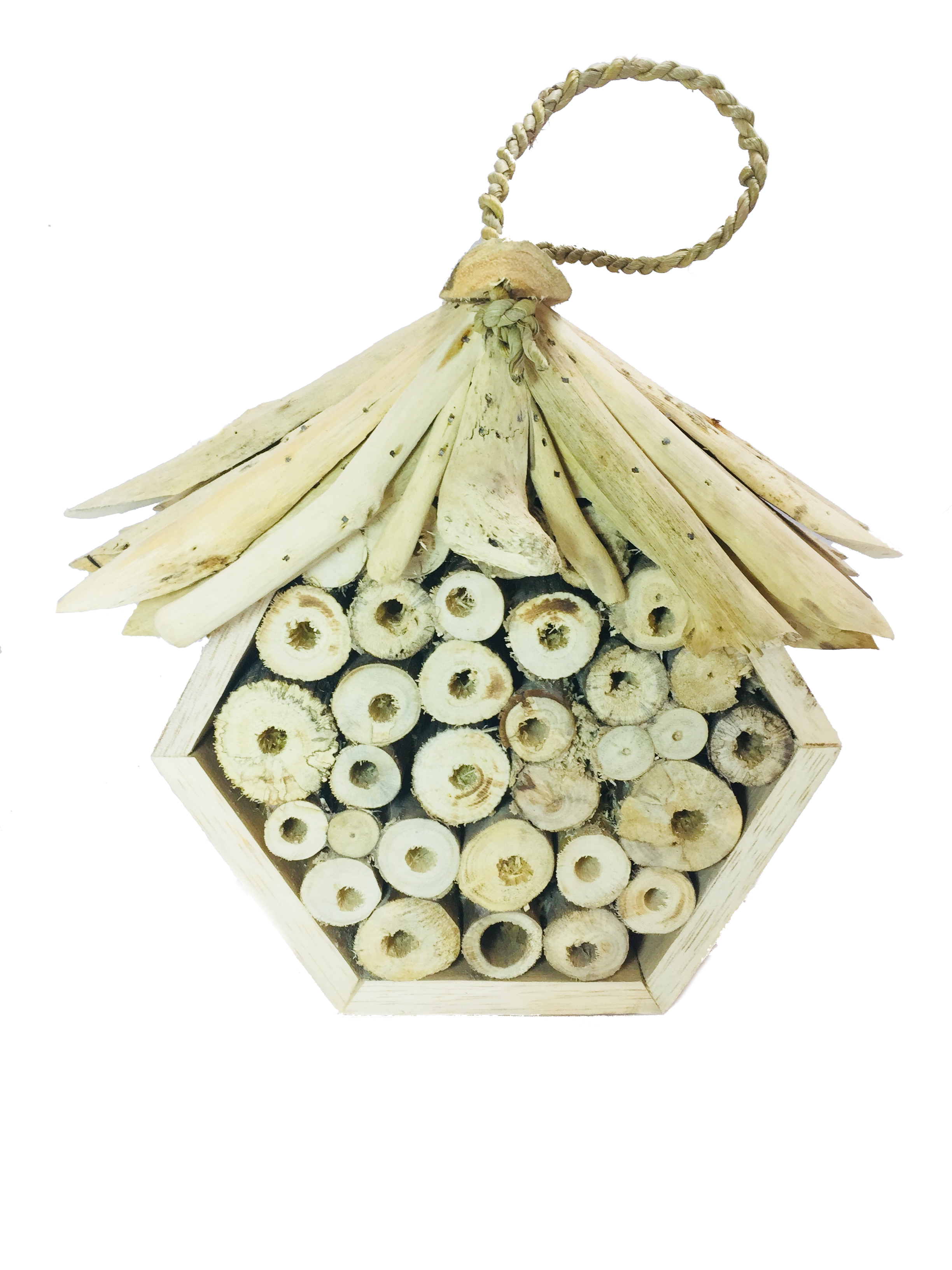 Driftwood insect hotel hand crafted by skilled workers in Indonesia.