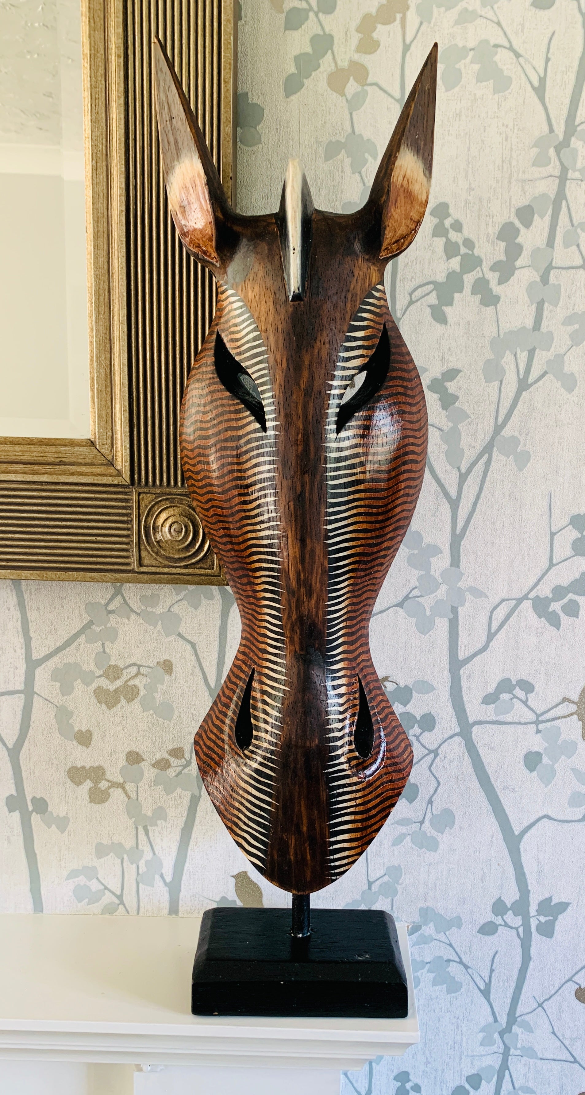 We have a wide selection of wall masks and freestanding animal masks in our shop in a range of colours and shapes, including zebras, giraffes and gazelles. All our masks are made from sustainable Albesia wood.