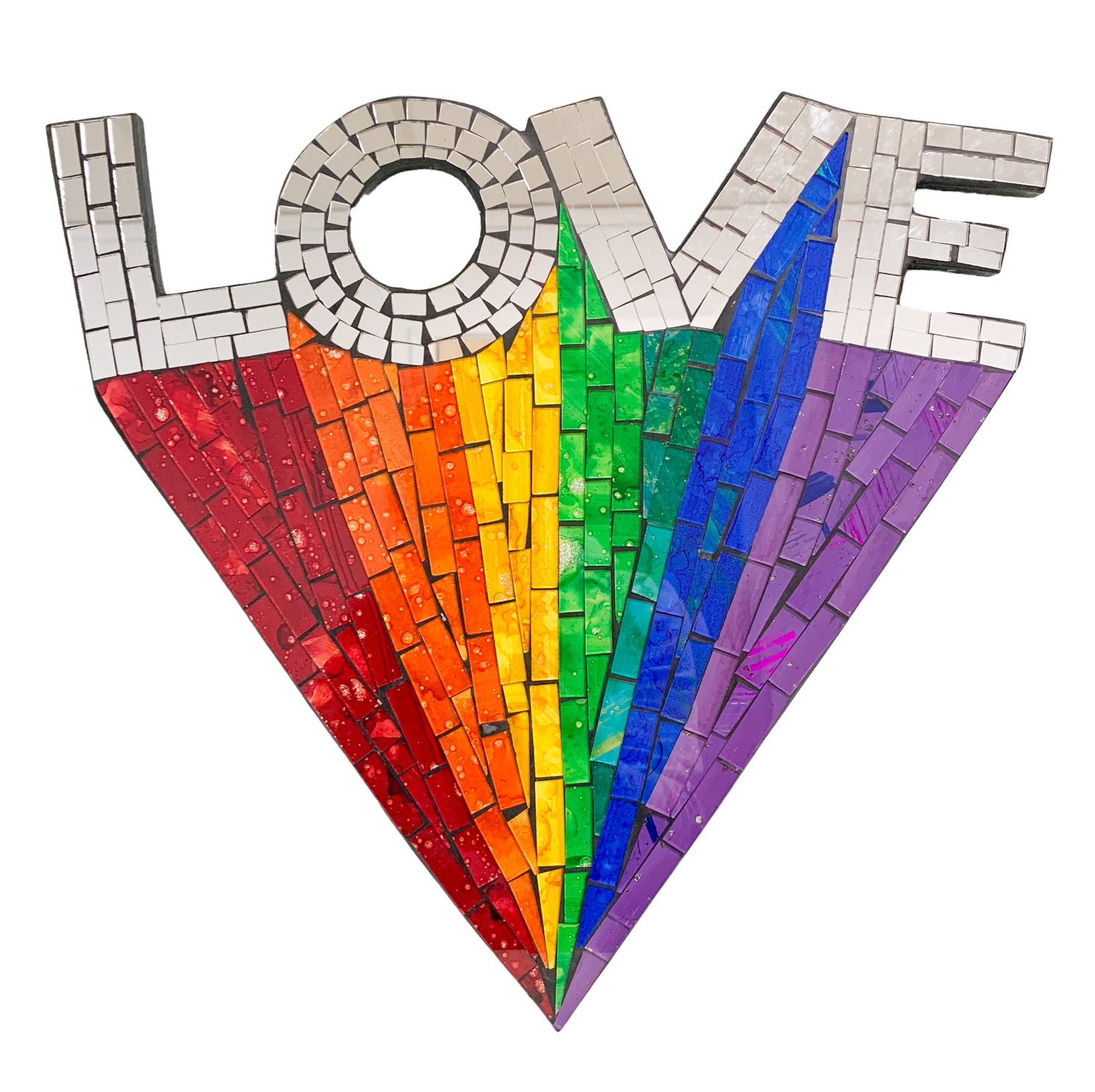 This handmade plaque has been made with rainbow glass and mirror mosaic pieces intricately placed onto a black MDF background to create a sparkling, wall hanging piece of art.