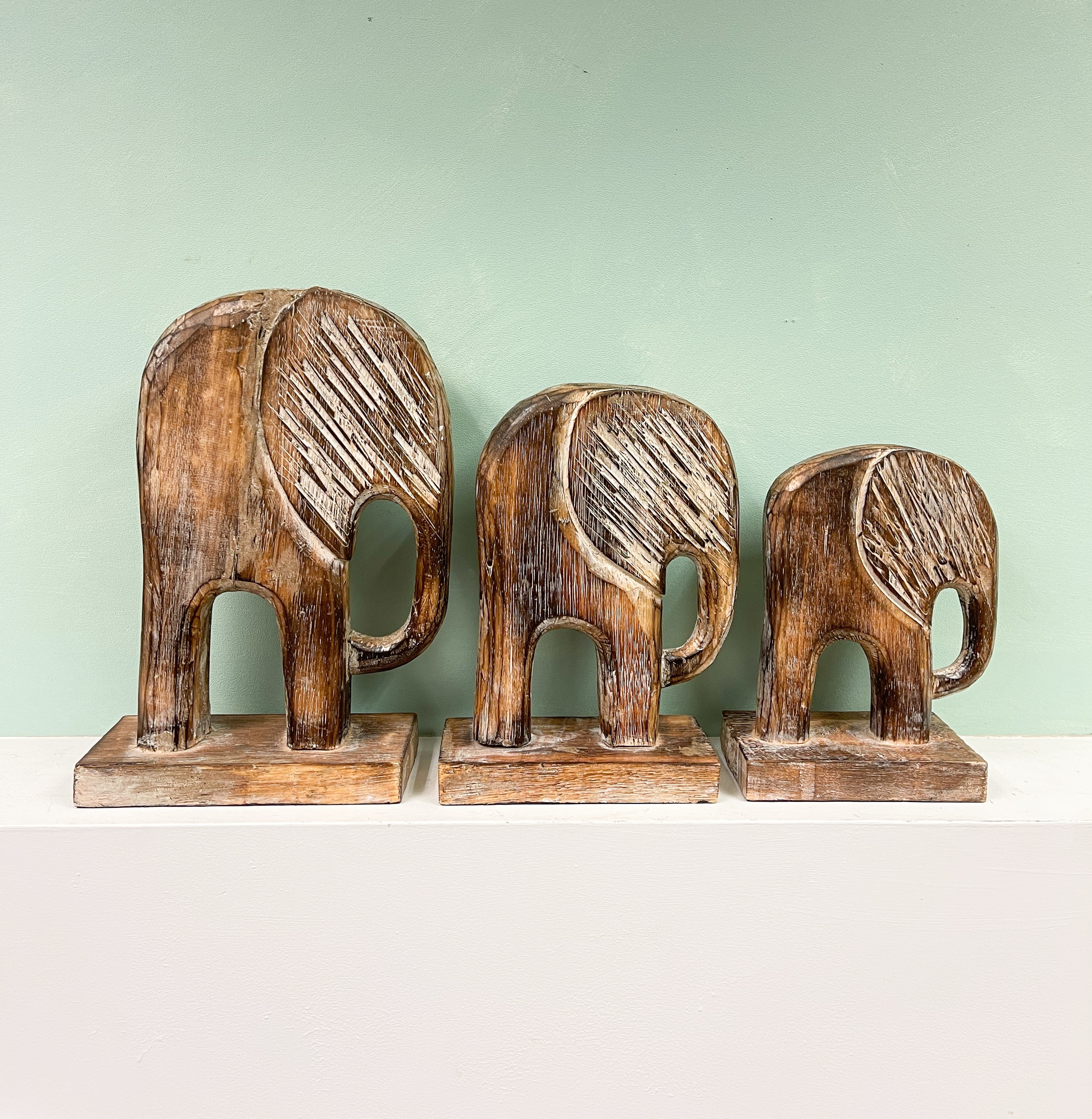 Natural Wooden Elephants Set of 3 - 20, 25, 30cm