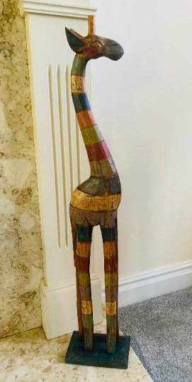 These striped giraffes are hand carved and painted by our talented artisans. These giraffes will stand tall wherever you decide to place them and add a touch of quirky to our normal giraffe design!