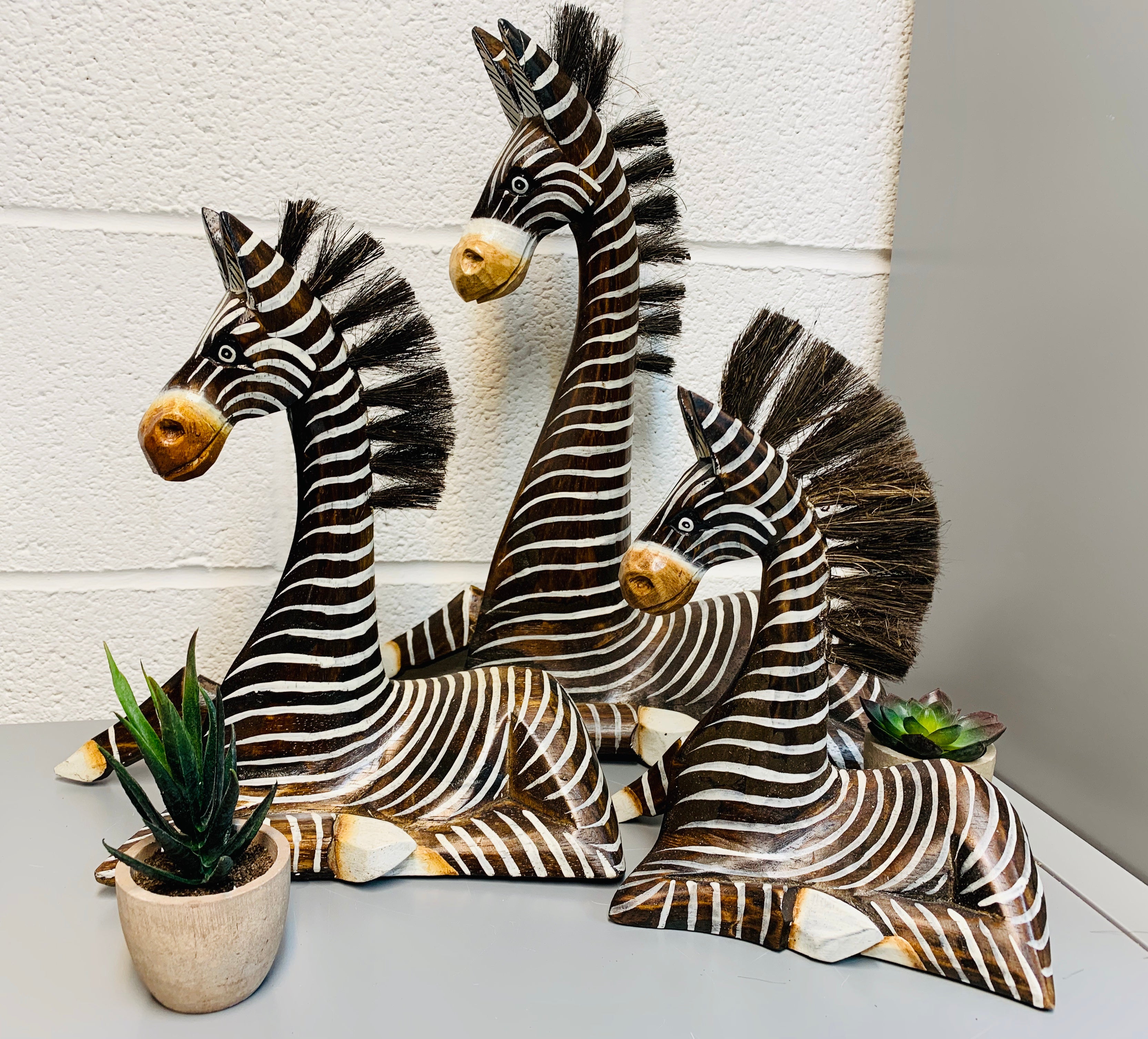 Hand carved zebra in various sizes. These zebras are hand carved by the artisans we work with in Indonesia.Small measures 20cmMedium measures 30cmLarge measures 40cmPlease note, this listing is for one item only.Fair trade is a simple way to make a difference to the lives of the people who make the things we love. We work directly with our artisans and they have an equal say in everything we do. Empowerment is at the core...