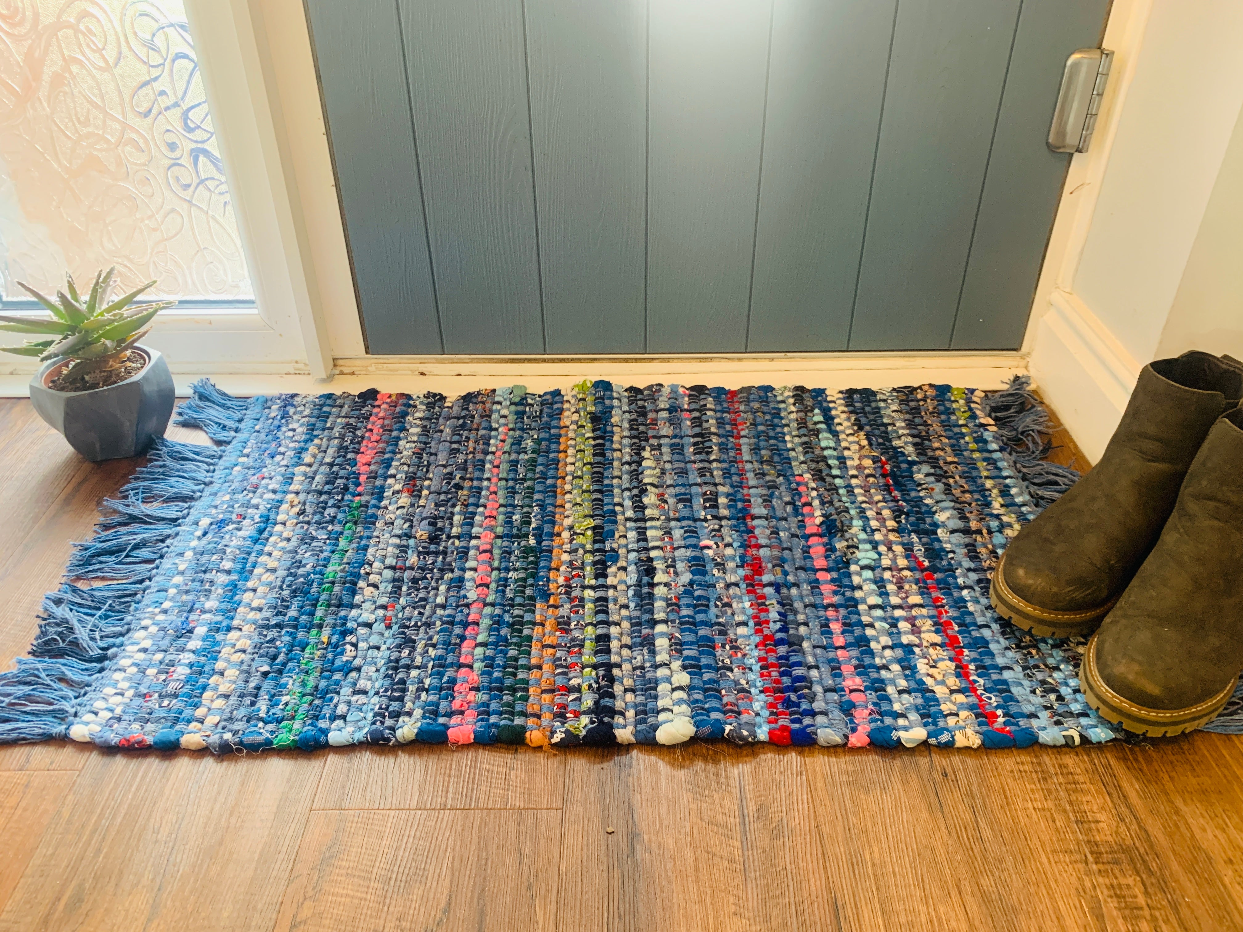 These Beautiful rugs are expertly crafted with a power loom using sustainable recycled materials and are perfect for adding some texture to your living room or bedroom.Due to nature of fabric and being handmade there may be loose threads coming out of the ends of the rug.These rag rugs are made from fabric scraps and thread so each piece is unique and one of kind.Handmade in IndiaMade with 60% cotton / 15% Rayon / 15%...
