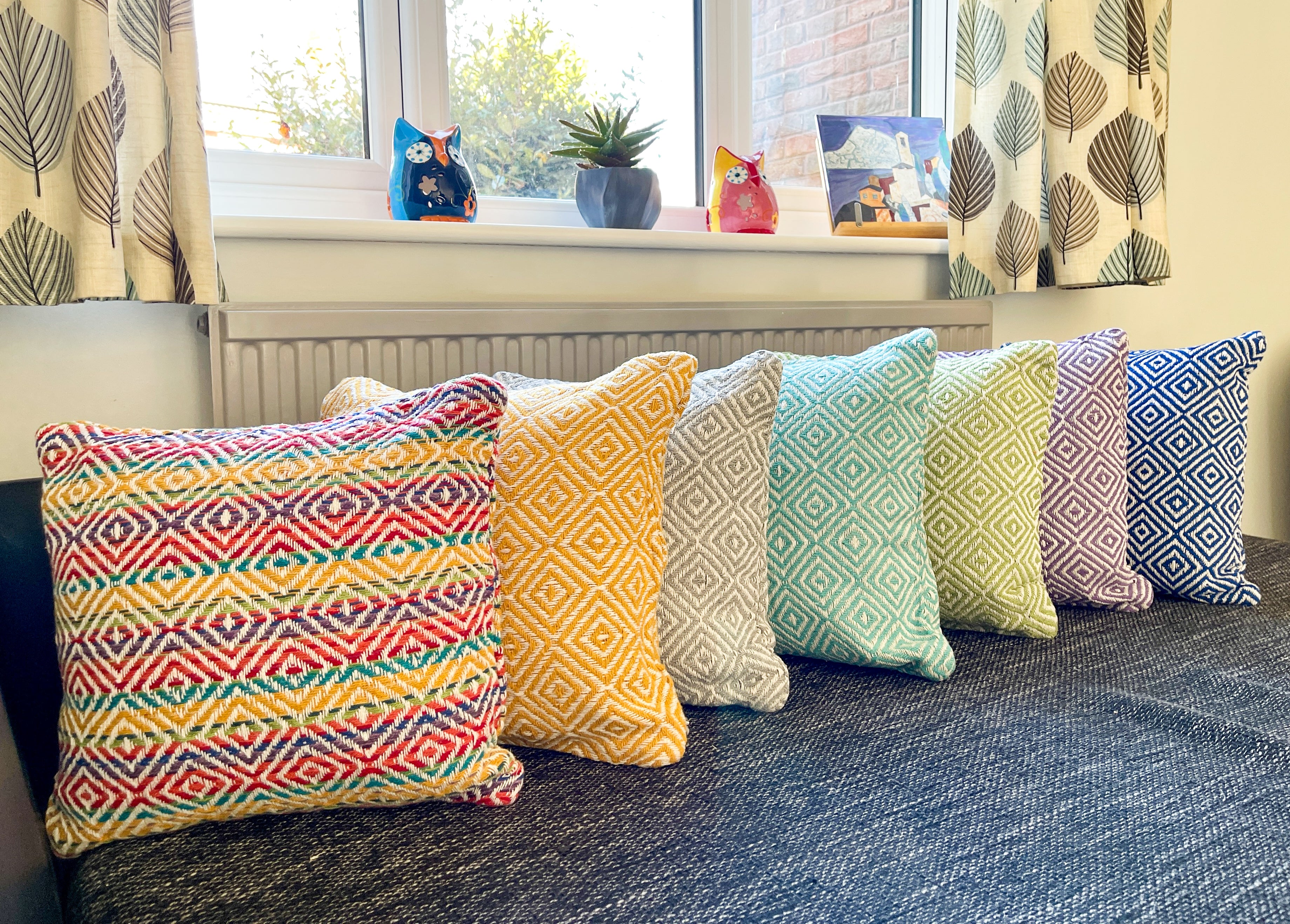 These beautiful cushion covers are made from sustainable recycled cotton and feature a classic diamond style design. All our cushions are hand made and double sided.