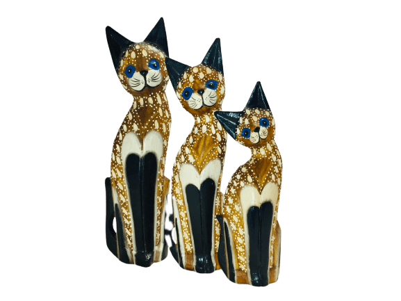 These exquisite little wooden cats are hand carved on the island of Bali. Once carved into their playful poses they are delicately hand painted to create these charming friendly felines. These figures truly capture the personality of cats and are ideal for any cat lover.