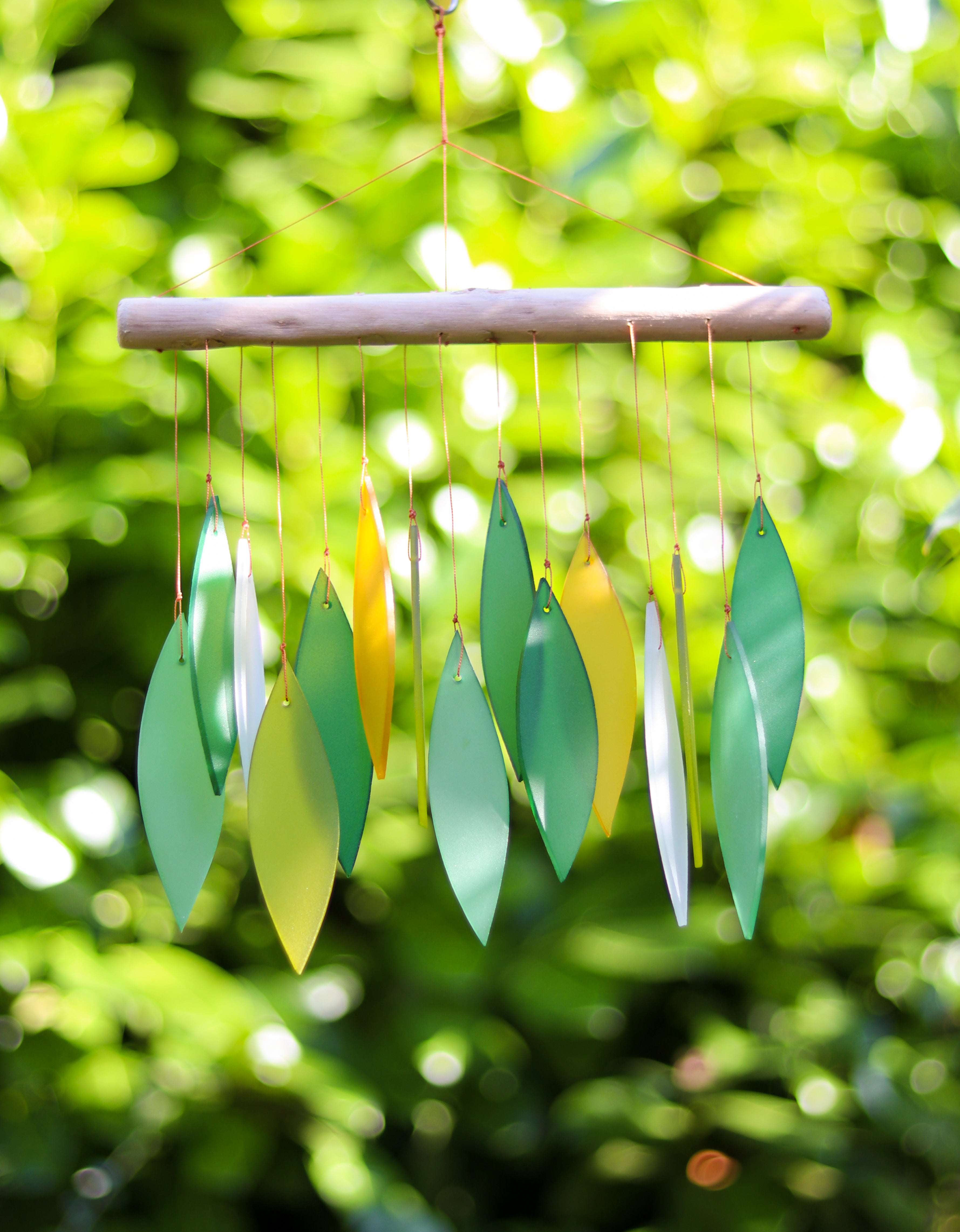 Small Glass Windchime 'Leaves' - Green
