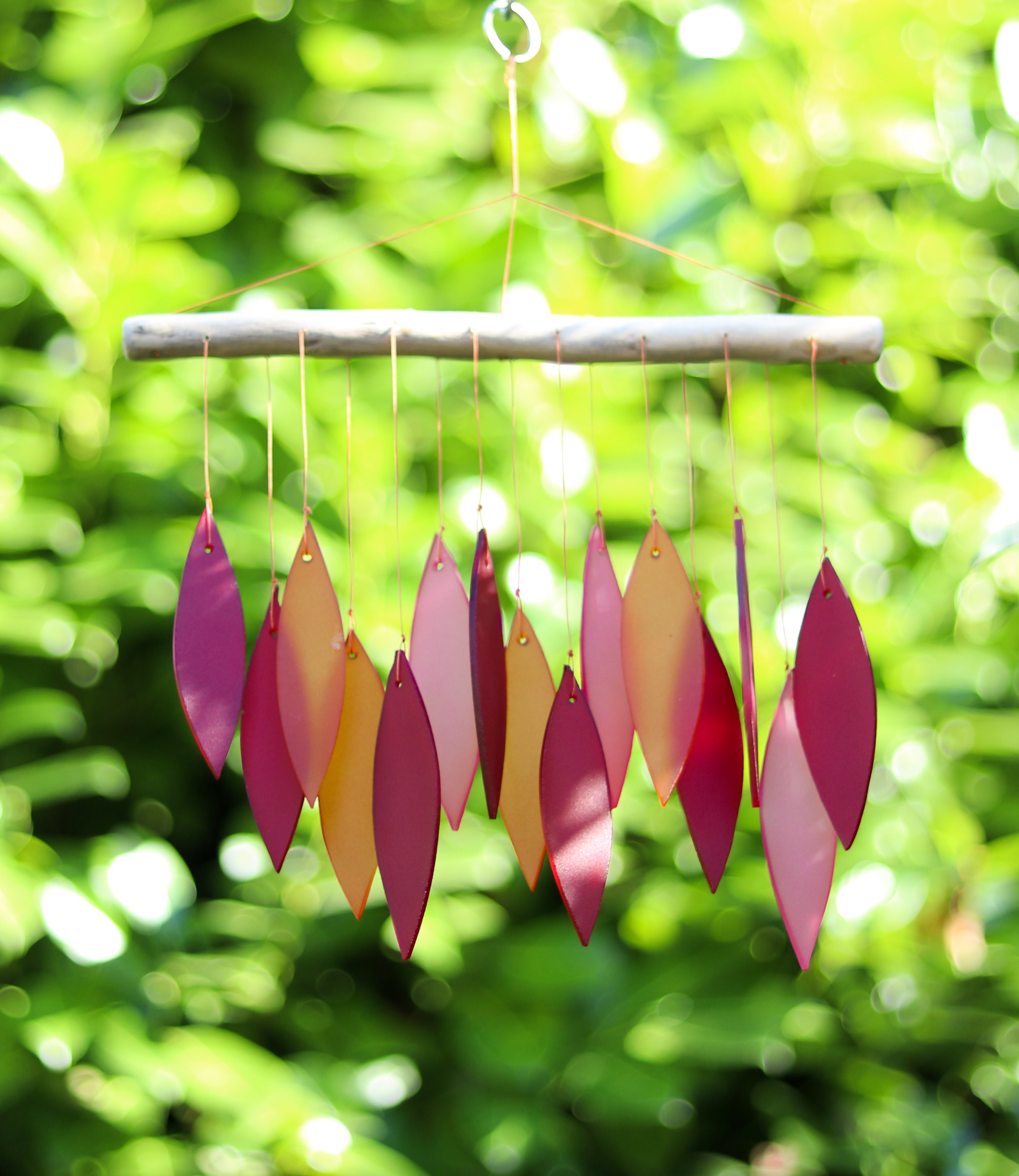 Small Glass Windchime 'Leaves' - Pink/Orange