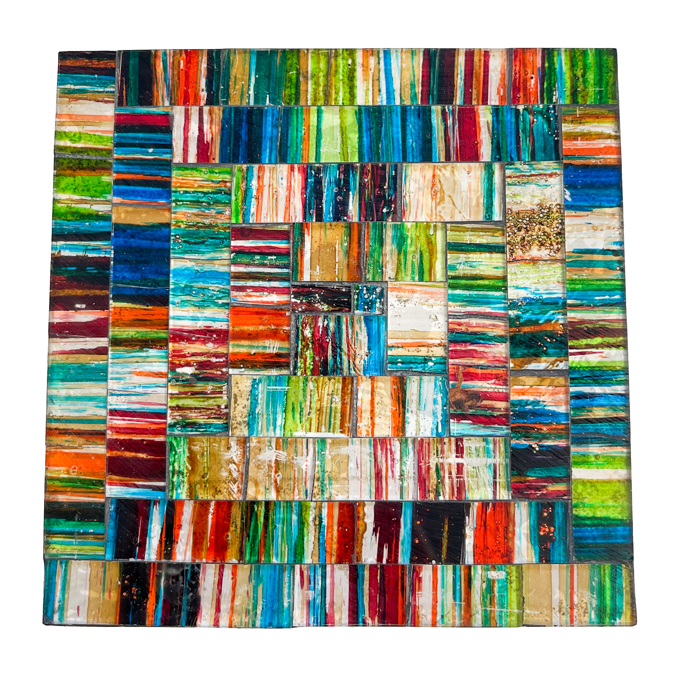 Add a pop of colour to your table with our square mosaic coasters. Handmade with glass mosaic, each coaster is completely unique. Dimensions: Width - 10cmHeight - 0.5cm