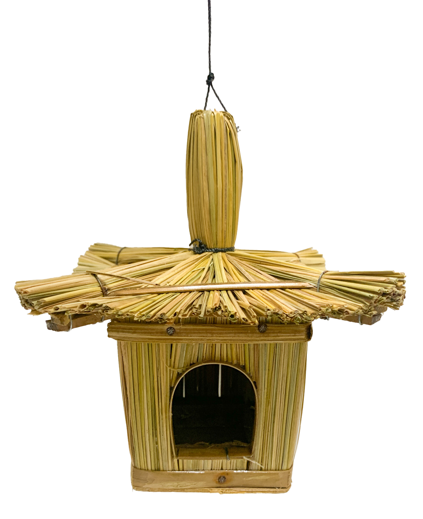 This beautiful straw birdhouse is handmade by skilled workers in Indonesia. Ideal for the smaller garden birds and a perfect purchase for any garden bird lover. Comes with hook for easy hanging.