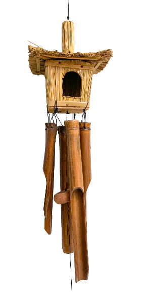 This beautiful wind chime and birdhouse is handmade by skilled workers in Indonesia. Made from straw and bamboo it is a must for any garden bird lover.