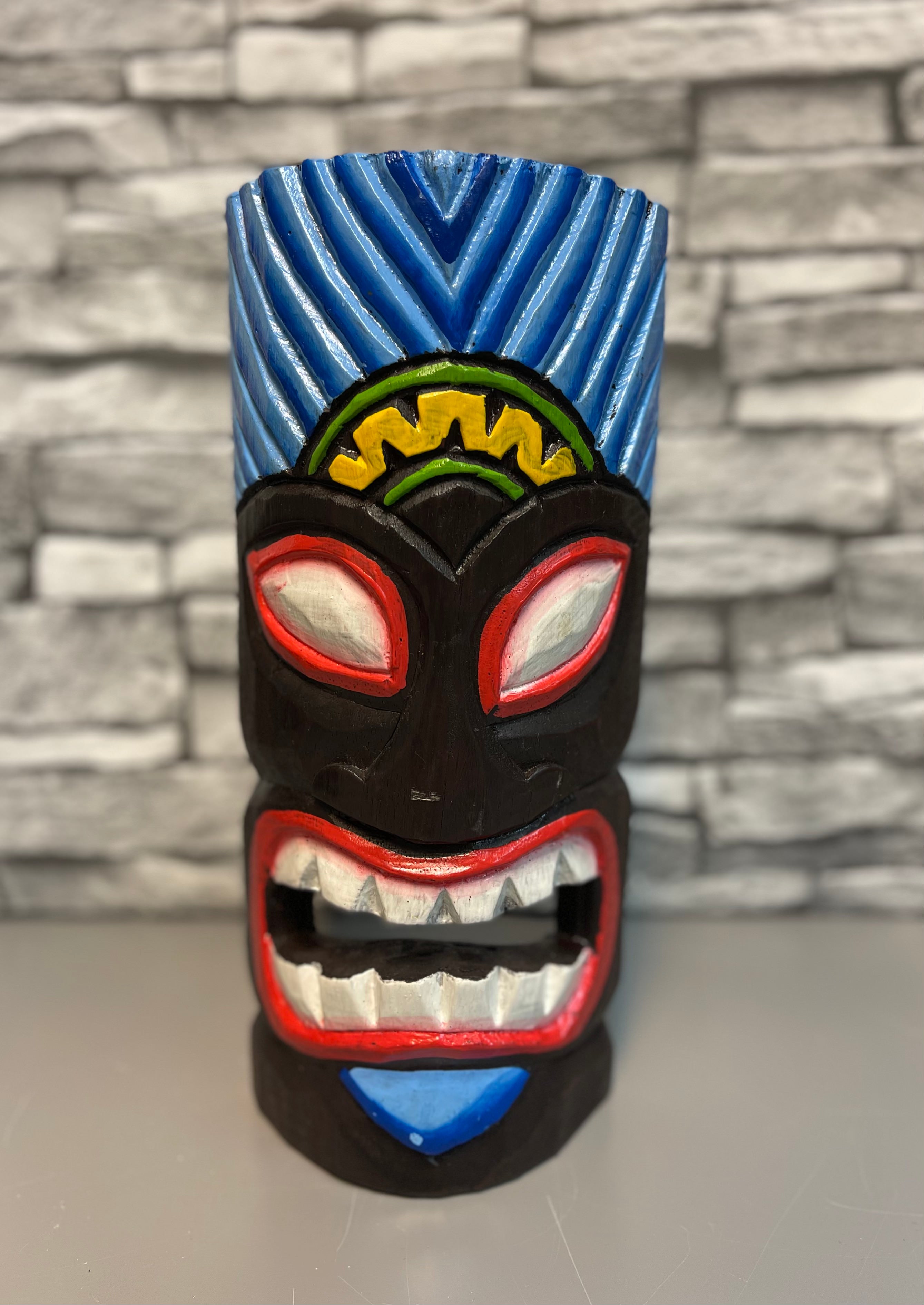 Beautiful tiki mask ornament made by our skilled artisans in Indonesia. These masks are made from Albesia wood with a high gloss finish. Perfect for any room as can be wall hung. Tiki is representative of fertility and is also believed to bring good luck and keep evil spirits away. Please note these masks are hand carved and hand painted meaning that there will be variances in each design. We encourage the families we work with to follow their artistic feelings, this ensures that you can receive an unique, specially crafted item.
