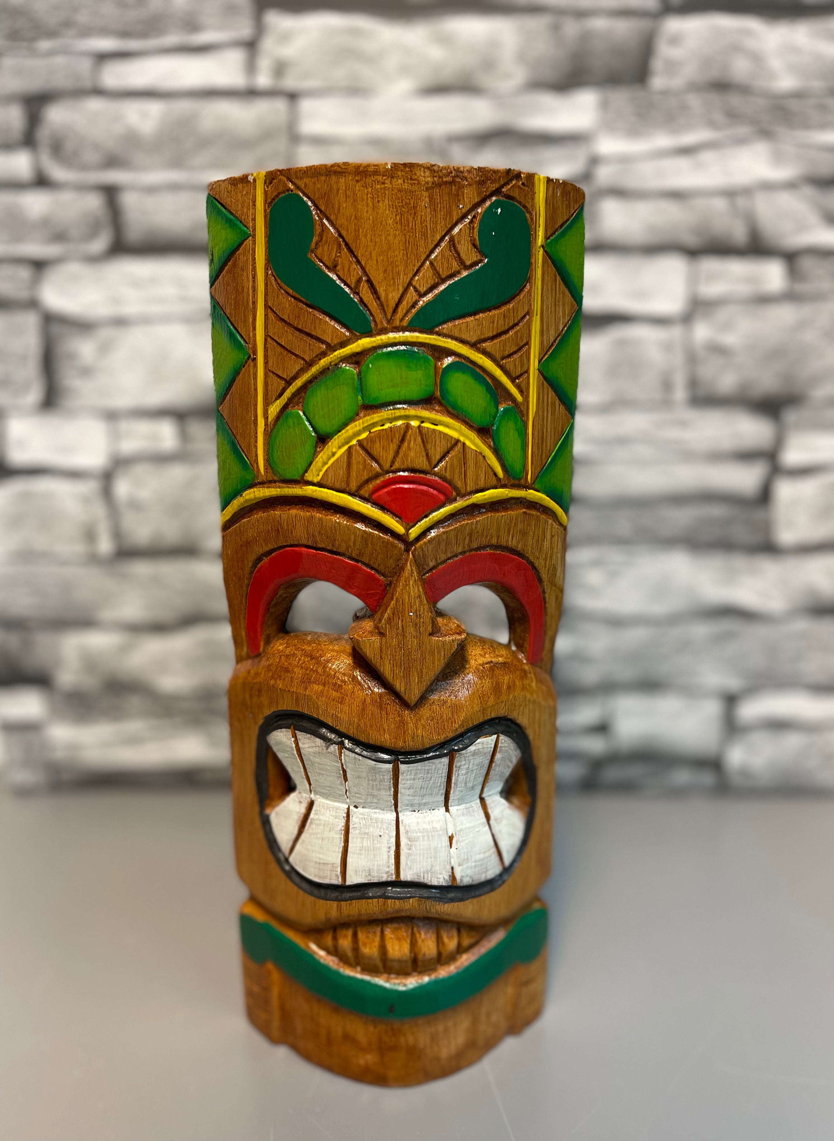 Beautiful tiki mask ornament made by our skilled artisans in Indonesia. These masks are made from Albesia wood with a high gloss finish. Perfect for any room as can be wall hung. Tiki is representative of fertility and is also believed to bring good luck and keep evil spirits away. Please note these masks are hand carved and hand painted meaning that there will be variances in each design. We encourage the families we work with to follow their artistic feelings, this ensures that you can receive an unique, specially crafted item.