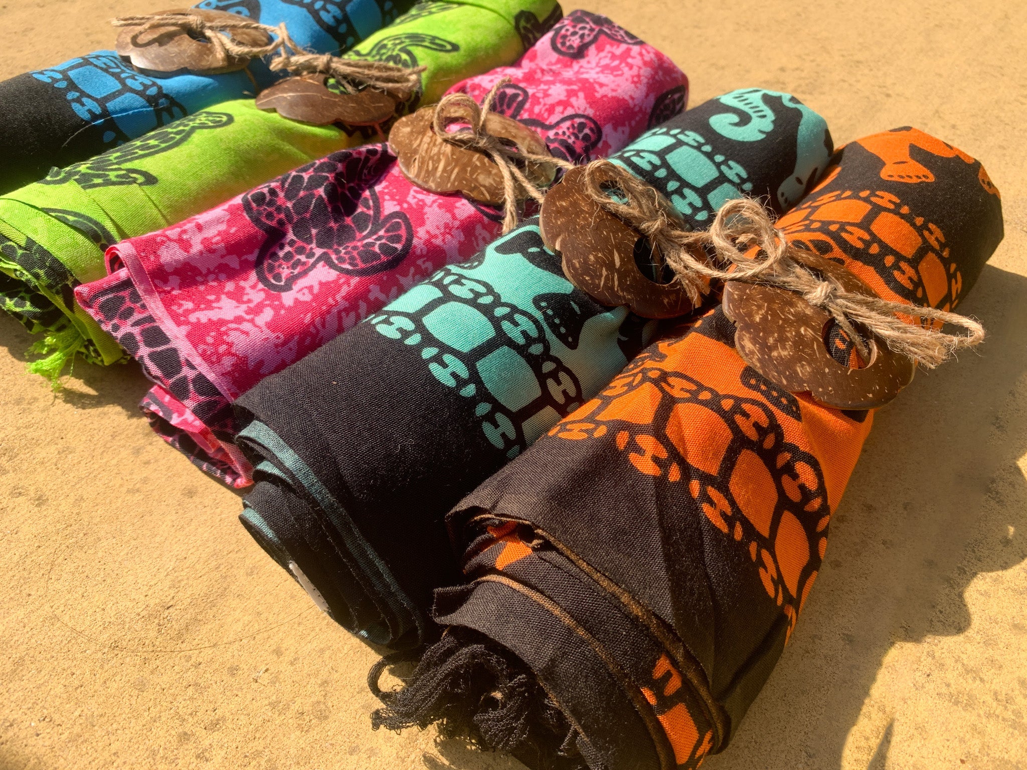 These traditional Bali sarongs come in various designs and colours. With either a turtle or elephant motif these sarongs are bright, beautiful and make for a perfect holiday accessory. Ideal to use by the beach over the summer too. The sarongs come with a coconut buckle to help fix the sarong in place.