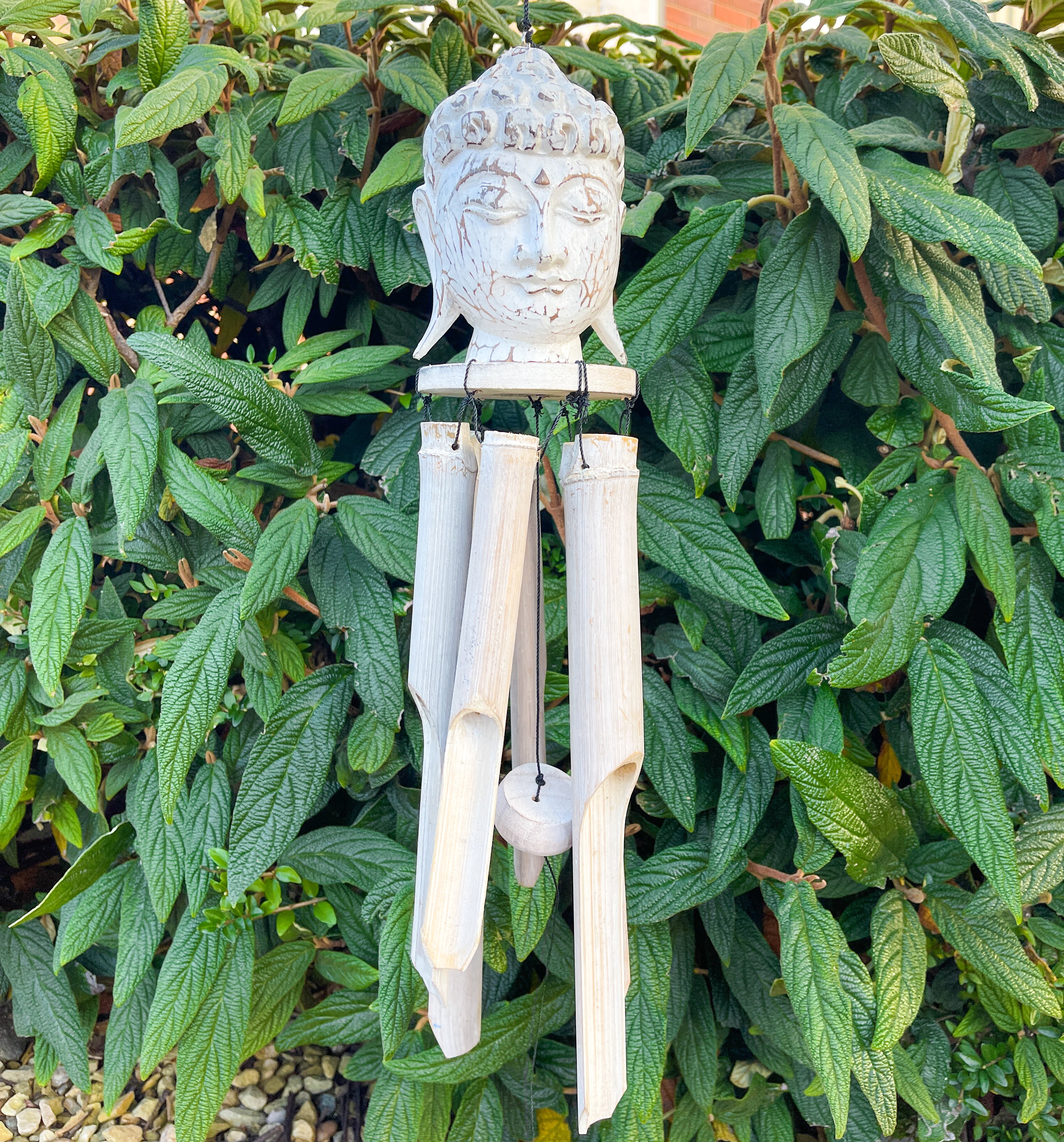 This beautiful natural bamboo wind chime is made from sustainably sourced bamboo and come with a wooden Buddha head top. Made from sustainably sourced bamboo by our skilled artisans in Indonesia and completely fair trade.