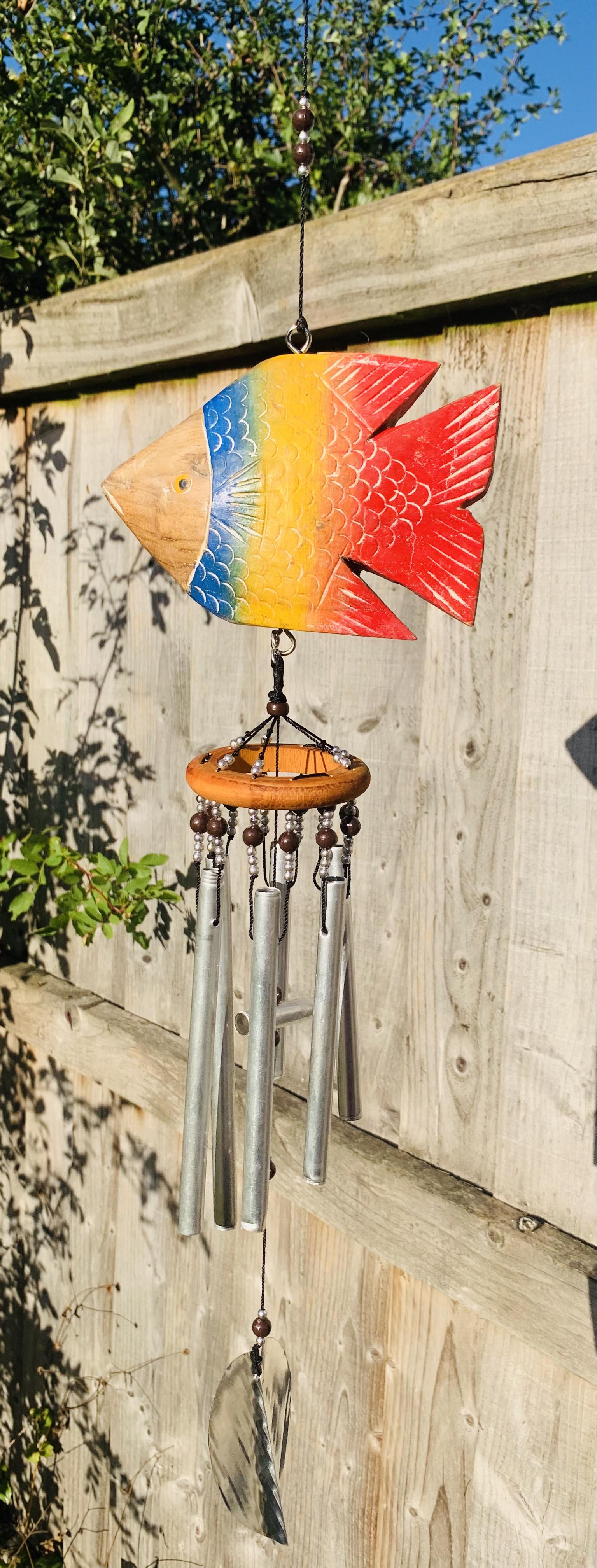 These beautiful wind chimes and made by our skilled artisans in Thailand. Each of the animals is individually carved and then painted onto a natural piece of wood meaning that every item is truly unique. All the chimes come with 6 x aluminium pipes that make a beautiful sound.