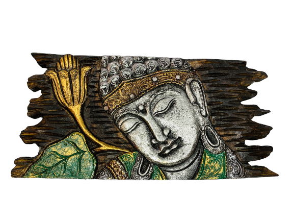 These serene buddha plaques all handmade by the skilled artisans we work with. These plaques and hand carved and come complete with a mirror jewel in the centre to reflect peace and tranquillity. They come with a hook for easy hanging.