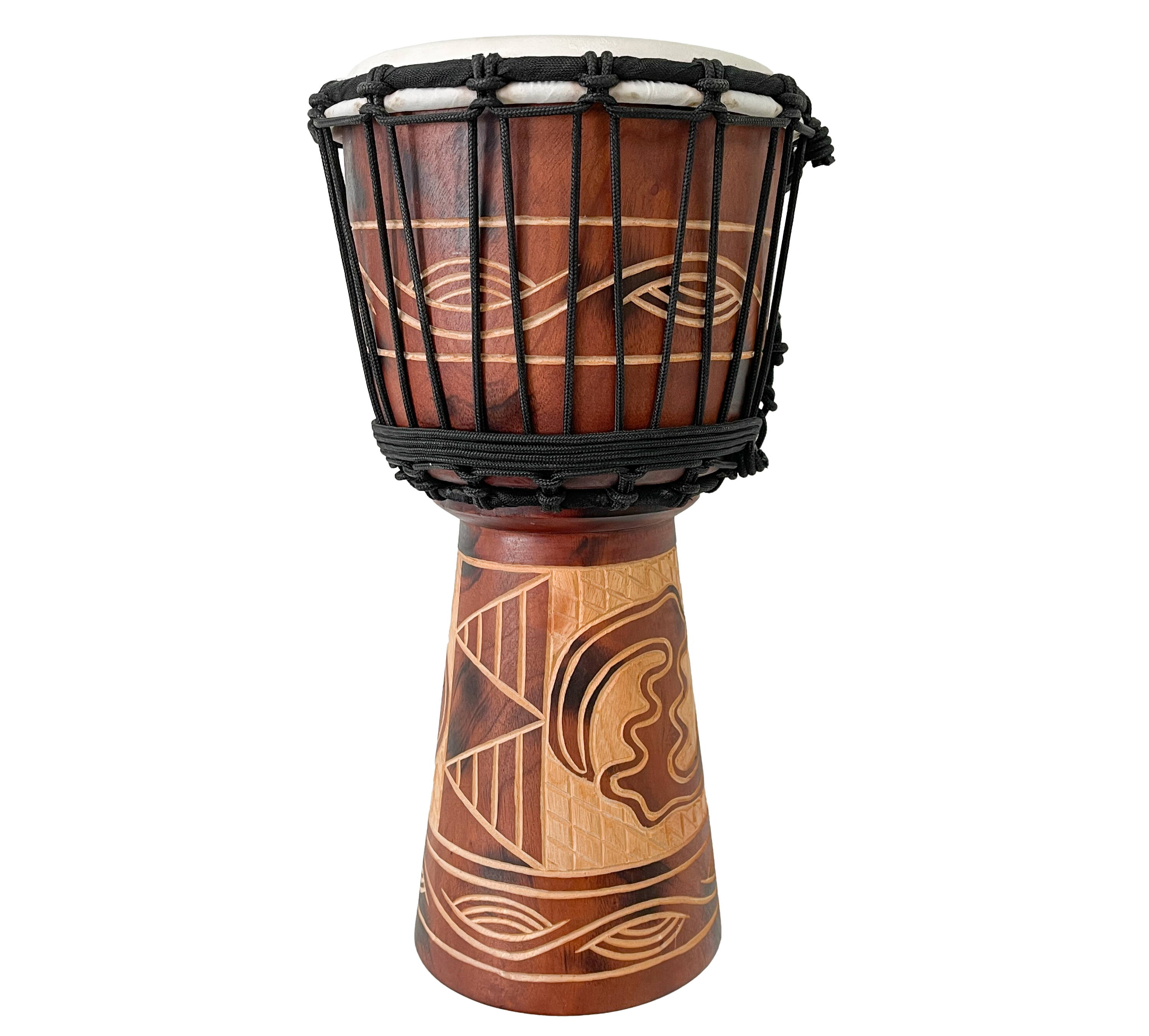 Measurements:Height - 40cm/16"Diameter - 21cm/8.25"Made in Indonesia by our talented artisans using local hard wood and goat skin.- 14 Rope Runners- Professionally Tuned- String handle, for easier carrying.- Excellent quality and sound! - Suitable for beginners and professionals alike.The djembe drum is said to have been invented in the 12th Century by the Mandinke tribe in what is now Mali, in West Africa.Fairtrade is a simple way to make a difference to the lives of...