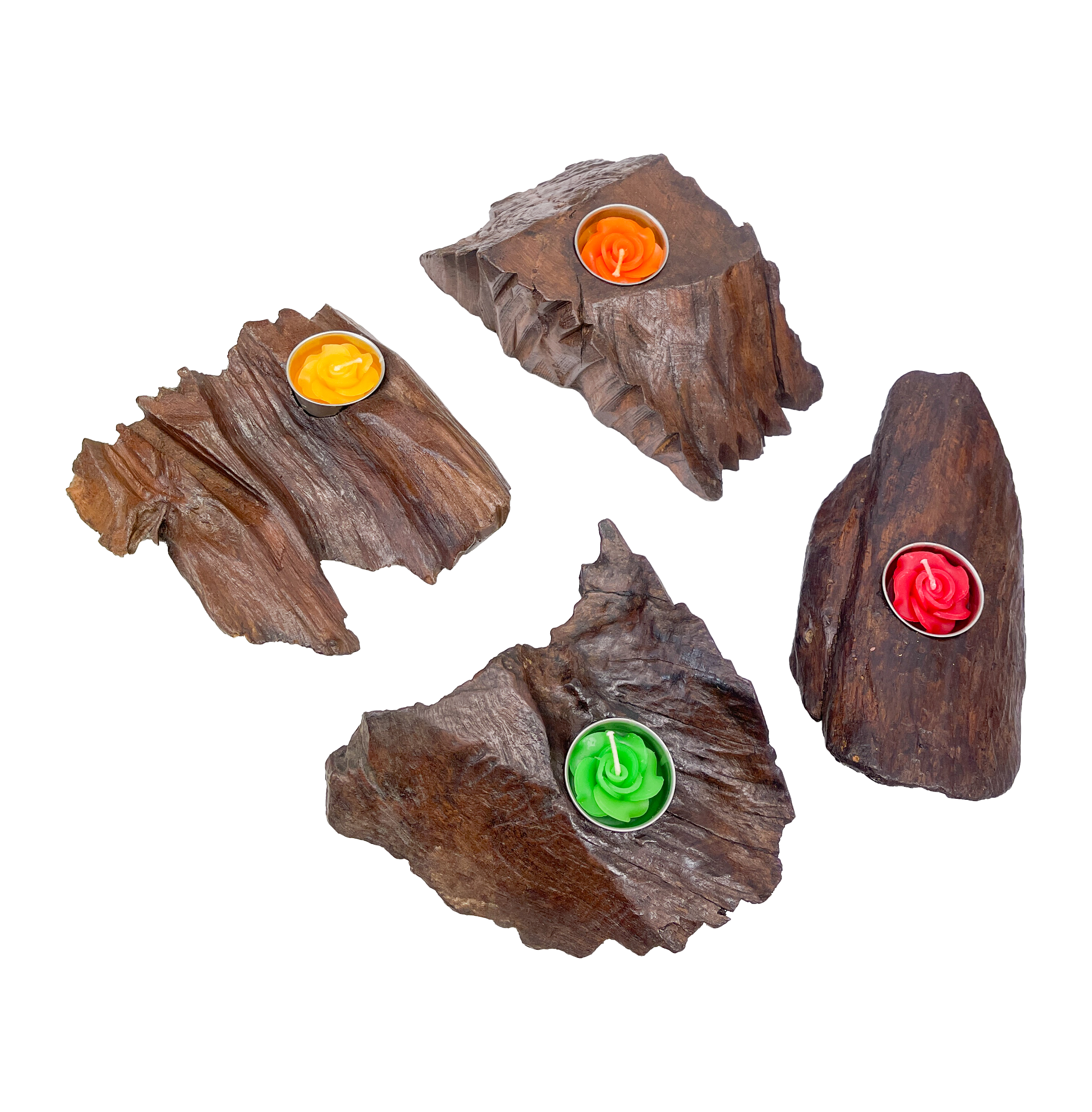 These cool wooden root tea light holders will make a great addition to any home. Each one is completely unique as it's a natural piece of wood root. Please note, they come with the tea light candle included however the candle colours are assorted so will vary.Price is for one item, photo is to show different variations they can come in.Dimensions Approximately:15-20cm - Sizes will vary slightly as its a natural piece of wood.Fair Trade...